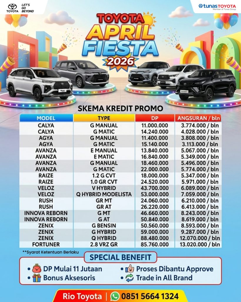 | 1.5 Q HV modelista CVT TSS | IDR 390.000.000 |